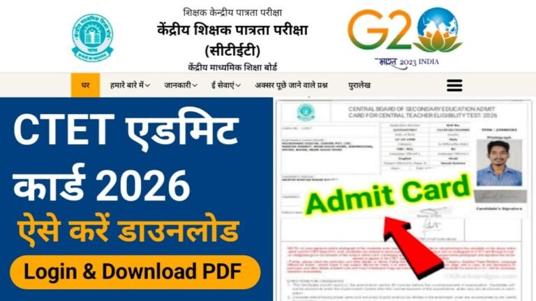 CTET 2026 Admit Card PDF: केंद्रीय माध्यमिक शिक्षा बोर्ड (CBSE) द्वारा आयोजित की जाने वाली सेंट्रल टीचर एलिजिबिलिटी टेस्ट (CTET) …